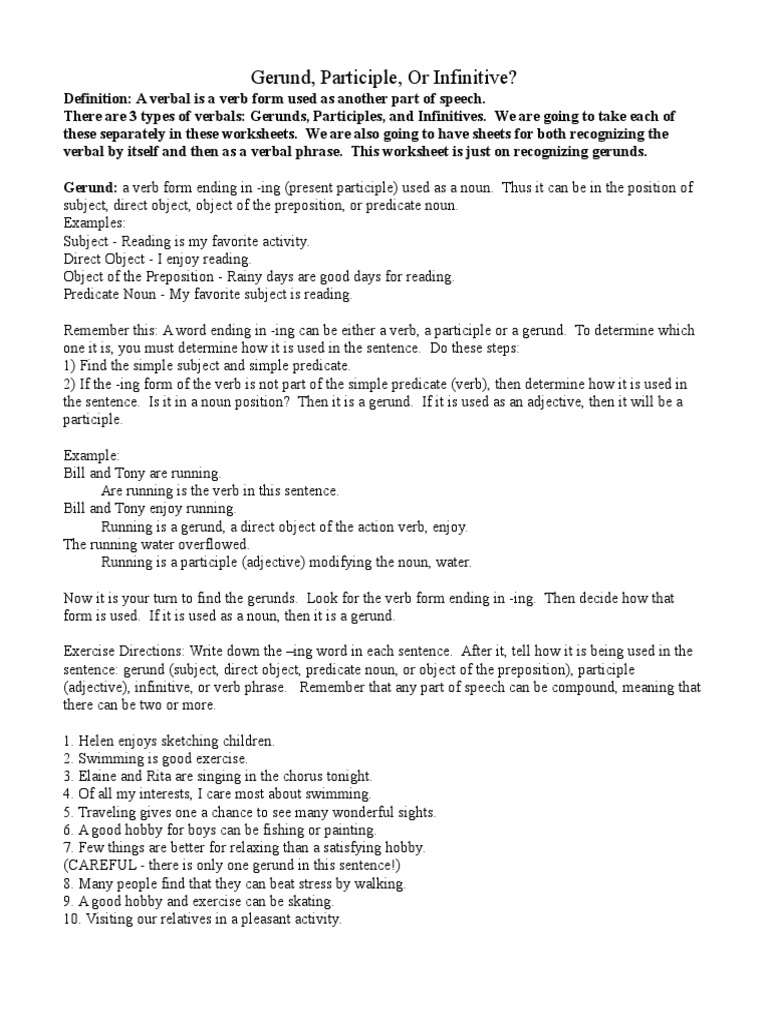 Predicate Noun Gerund Examples - Gerunds Advanced English Grammar For Esl Learners Practice Makes Perfect : Some examples of gerund phrases used as predicate nominatives include:. The gerund can be a subject, a direct object, a predicate nominative, an appositive, an indirect object, or an object of a preposition. A predicate nominative can be a compound noun: In other languages, specifically dutch, italian, or russian, it is a verbal form that is similar to a present. Let's break those terms down. Many words which were originally gerunds are now treated as simple nouns.